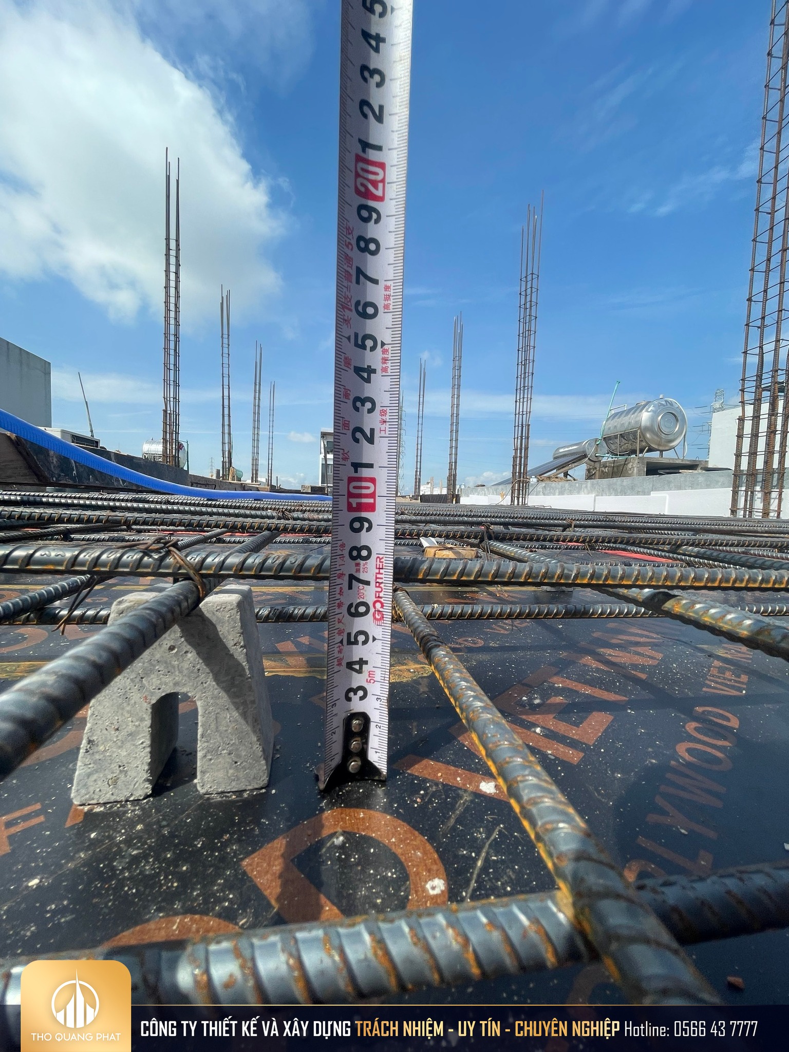 Toàn bộ quá trình thi công sàn tầng 4 được giám sát nghiêm ngặt và xuyên suốt bởi đội ngũ kỹ thuật, đảm bảo từng hạng mục đều thực hiện đúng theo bản vẽ thiết kế. Công tác kiểm tra cốp pha, cốt thép được thực hiện kỹ lưỡng nhằm đảm bảo đúng cao độ, khoảng cách và khả năng chịu lực của kết cấu sàn. Bên cạnh đó, quá trình đổ bê tông được triển khai đồng đều, đúng kỹ thuật, kết hợp với công tác bảo dưỡng sau thi công nhằm đảm bảo chất lượng, độ bền và sự an toàn lâu dài cho toàn bộ công trình.