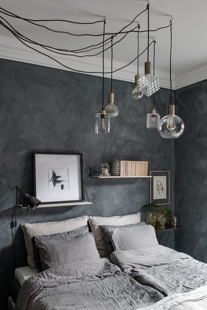 Không gian phòng ngủ cũng không ngoại lệ, với gam màu xám đặc trưng của phong cách này. Tuy nhiên ban ngày vẫn có thể nhận được ánh sáng tự nhiên từ bên ngoài qua cửa sổ. Giúp căn phòng trở nên thoáng đãng hơn. Bên cạnh đó, hệ thống đèn được trang trí một cách vô cùng tinh tế và nghệ thuật góp phần tạo nên sự sang trọng cho tổ ấm của bạn.