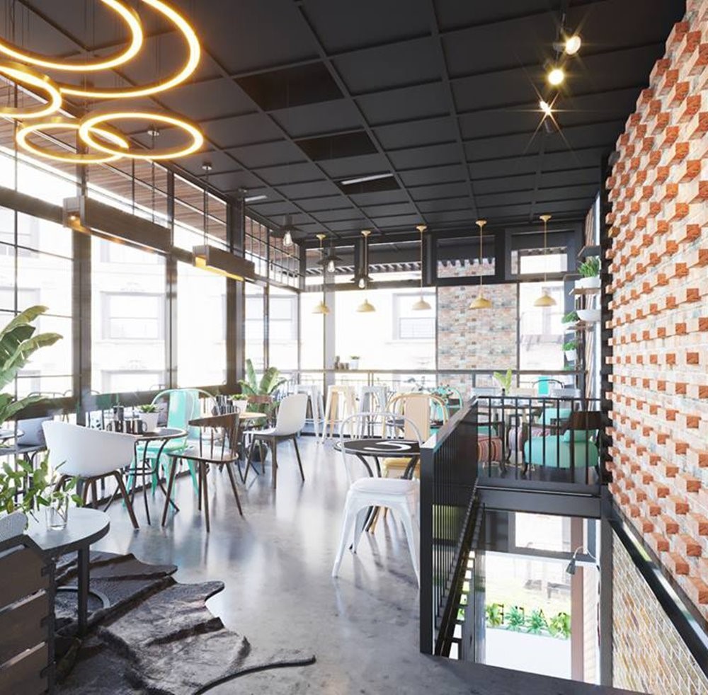 Kiến trúc đơn giản, màu sắc nhẹ nhàng cùng với không gian thoáng đãng, thoải mái là sự lựa chọn hoàn hảo. Thiết kế nội thất phong cách công nghiệp ấn tượng. Xu hướng hiện nay tập trung vào đối tượng khách hàng là sinh viên hoặc nhân viên văn phòng.