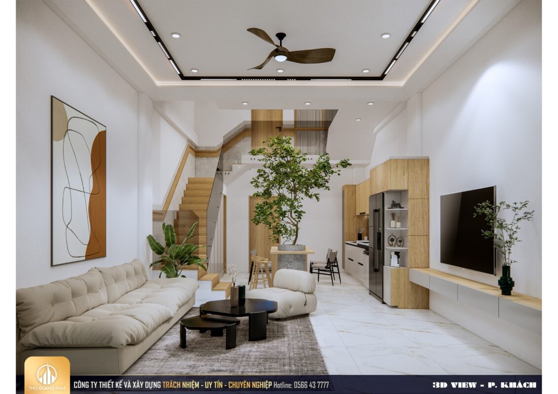 Căn nhà phố hiện đại – tiện nghi được Thọ Quang Phát thiết kế phong cách nhẹ nhàng tinh tế tạo ra cho gia chủ một không gian sống lý tưởng. Từ mặt tiền cho đến các bố trí bên trong căn nhà đều hướng đến sự hiện đại và thoáng đãng.