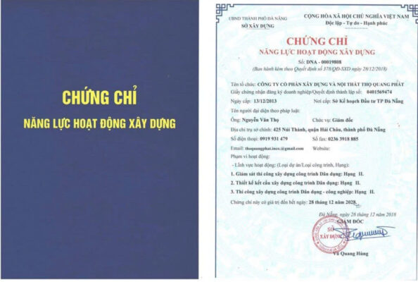 THỌ QUANG PHÁT: chứng chỉ năng lực hoạt động xây dựng hạng II.