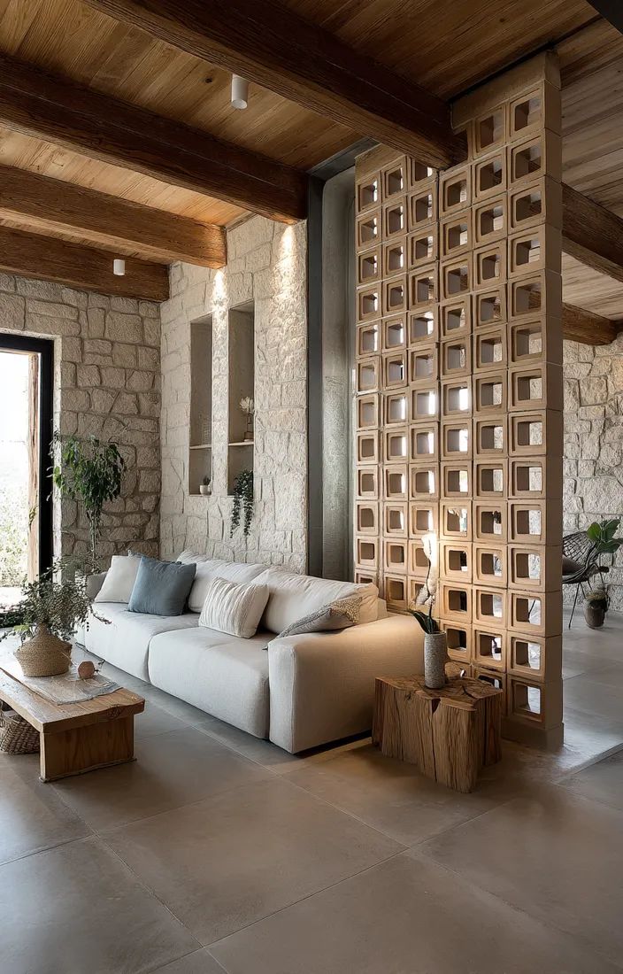 Khi ánh sáng chiếu qua các ô rỗng, chúng tạo nên hiệu ứng bóng đổ sinh động, góp phần tăng chiều sâu và cảm xúc cho không gian.