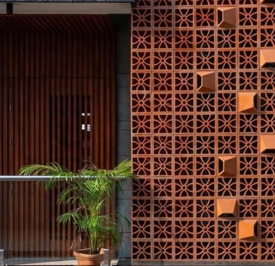 Trong thực tế, gạch bông gió không chỉ xuất hiện ở mặt tiền nhà phố mà còn được sử dụng linh hoạt trong vách ngăn nội thất, giếng trời, hàng rào hay quán café.